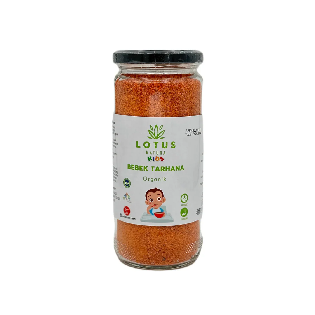 Lotus Natura Baby Organik Bebek Tarhanası, 6 ay ve üzeri bebeklerin ek gıdaya geçiş döneminde güvenle tüketebileceği şekilde hazırlanmıştır. Tamamen organik sertifikalı sebzeler ve organik tam buğday unu ile üretilen bu özel karışım, minik midelere sıcak ve besleyici bir öğün sunar.