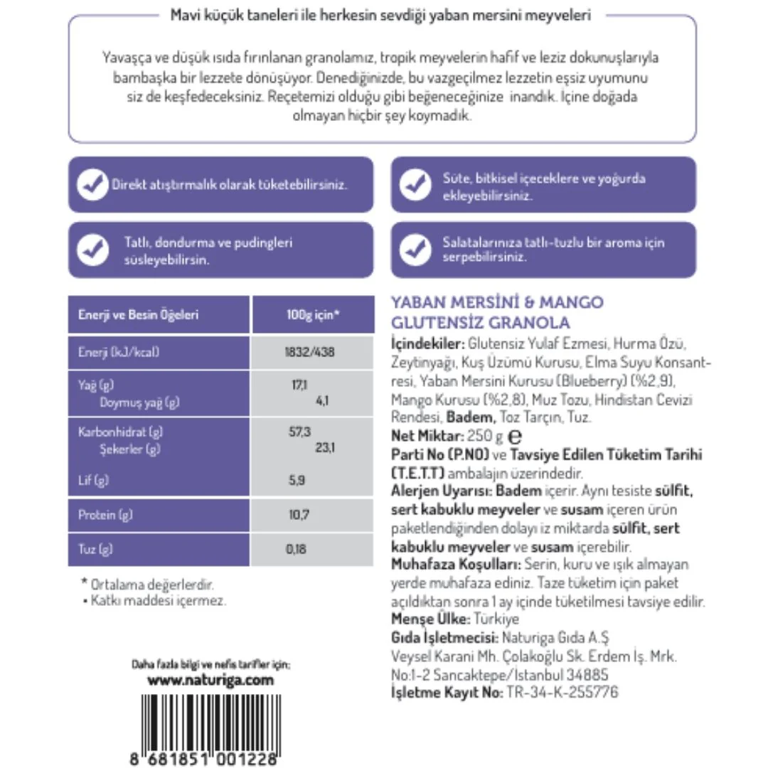 Naturiga Yaban Mersini & Mango Granola Glutensiz (250 gr)