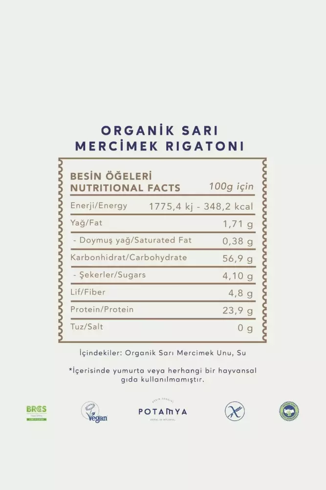 Çocuklarınızın bayıldığı makarnayı, besin değeriyle içinizi rahat ettirecek bir formda sunmaya ne dersiniz? Potamya Organik Sarı Mercimek Makarna, sofralarınıza sağlık ve lezzet getirmek için burada! %100 organik sarı mercimekten başka hiçbir şey içermeyen bu makarna, ailenizin yeni favorisi olacak.