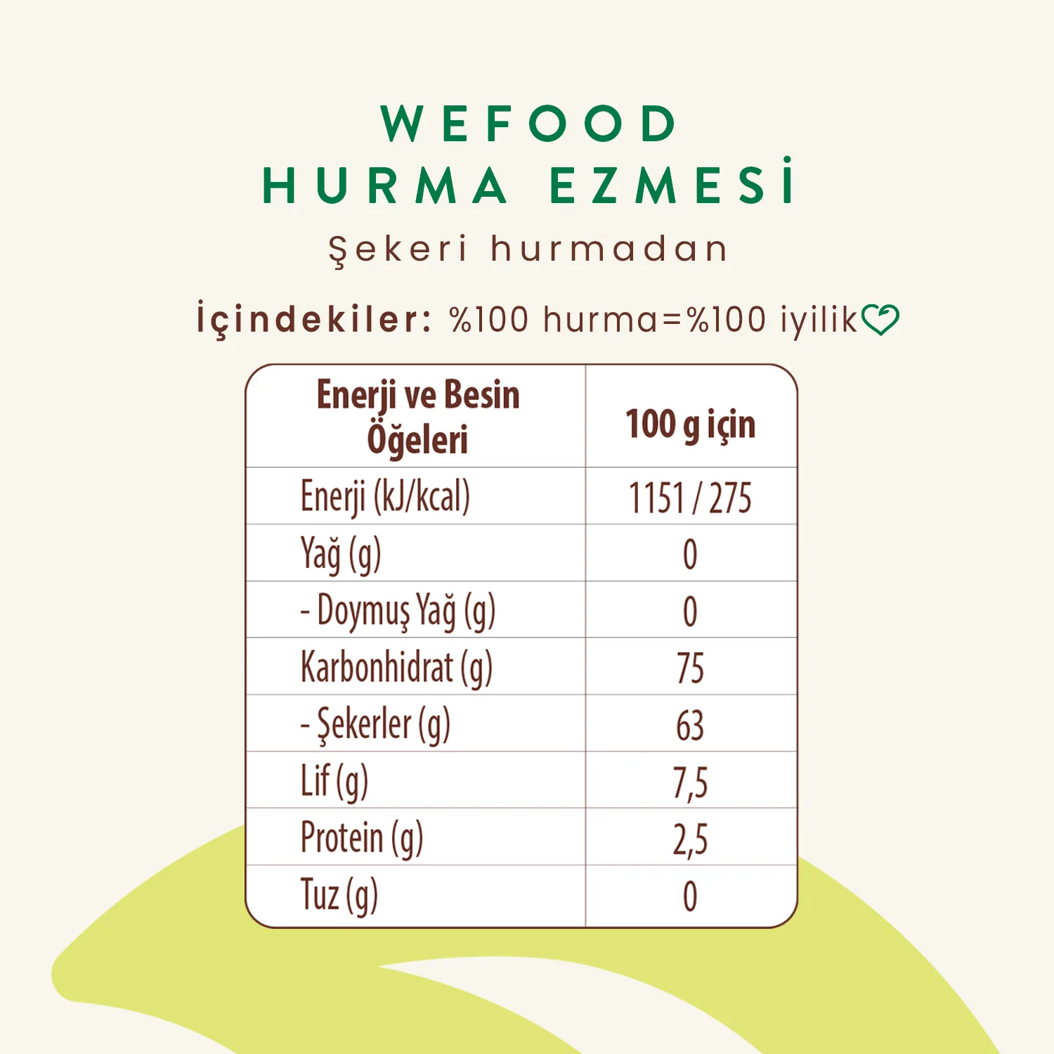 Organibebe.com güvencesiyle sunulan Wefood %100 Sade Hurma Ezmesi ile ailenize "iyi ki" diyeceğiniz, doğallığın ve lezzetin en saf halini sunun.