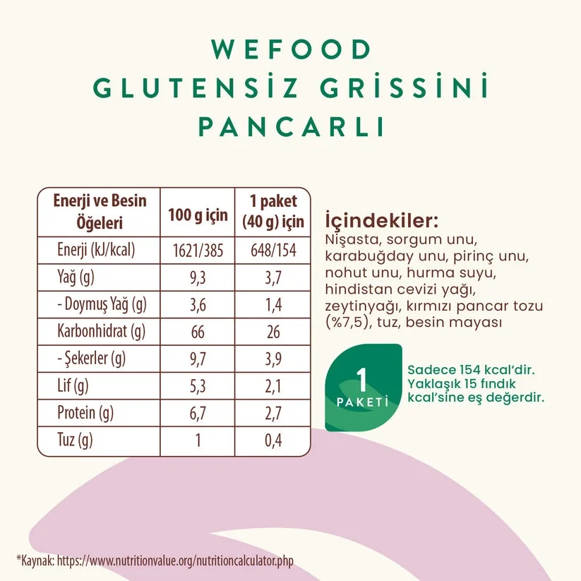 Haydi, siz de bu eşsiz lezzeti keşfedin ve sağlıklı atıştırmalık rutininize Wefood Glutensiz Grissini Pancarlı'yı ekleyin!