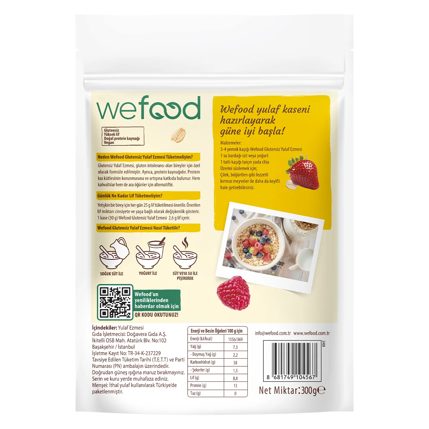 Wefood Glutensiz Yulaf Ezmesi (300 gr) Birinci Kalite Doğal ve Glutensiz