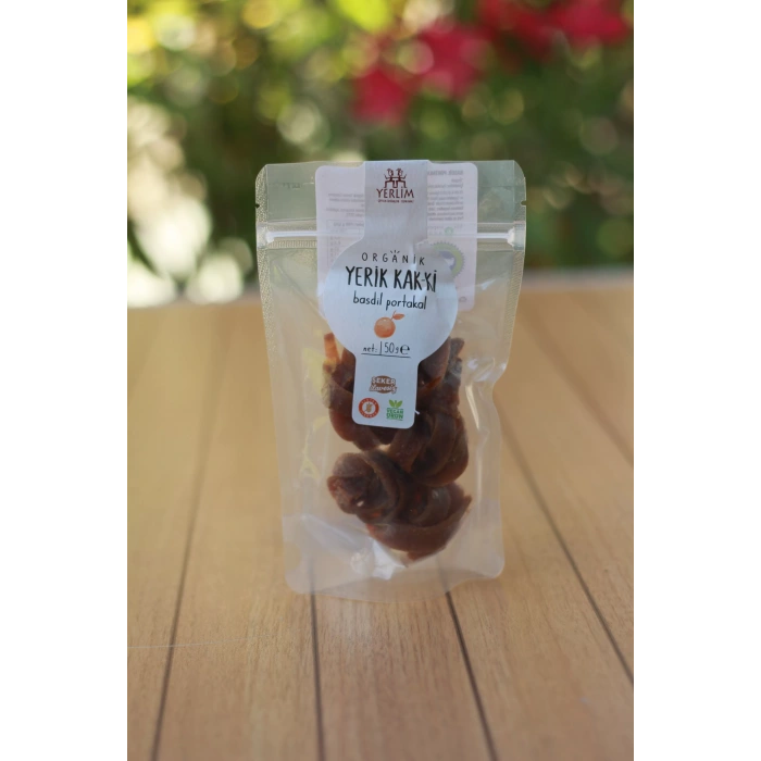 Yerlim Organik Yerik Kak-Ki - Basdil Portakal (50gr): Portakalın ferahlatıcı ve C vitamini deposu aromasıyla zenginleştirilmiş bu kuru kakı, enerji verici ve lezzetli bir seçenektir. Özellikle çocukların severek tüketeceği doğal bir atıştırmalıktır.